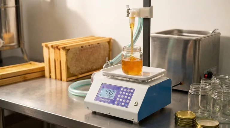 - Se estiver a lidar com mel fortemente granulado: Use um processo de duas etapas, primeiro liquefazendo o mel completamente e depois deixando-o arrefecer até aos ideais 49°C (120°F) antes de começar a engarrafar.